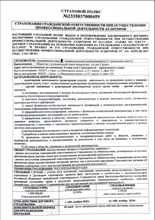 г. Орел, Московское шоссе 137, кор. 5, офис 535, АУДИТ ГАРАНТ